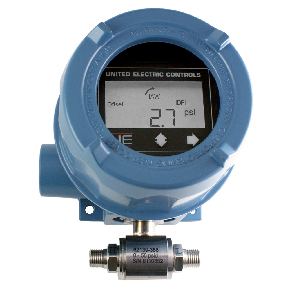 Sistema de seguridad, alimentación de 20 a 40 VDC en lazo, con señal analógica de 4 a 20 mA, HART 7, con conexión a proceso en ¼” NPT macho y 2 conexiones para tubería eléctrica de ¾” NPT hembra. ONE Series marca United Electric.